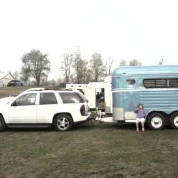 This is "Old Blue", also known as 'The Rig". This was our first trailer used to haul our beloved Moon to shows along with his barn buddy, Farmer. This started our journey of hauling. horses.